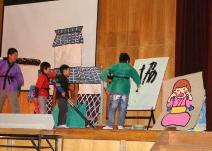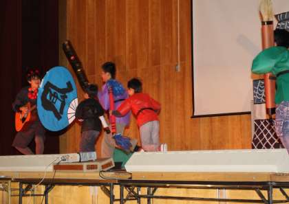 さあ,筆太郎が「協力」という字を書きました。そう,4人で力を合わせて,再度チャレンジ。見事に,やっつけます。