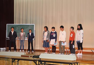 本日のトリは,6年1組です。6年は,小学校最後の学習発表会ということで,各クラス単位で出演します。「ロイの祈り」という題です。