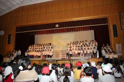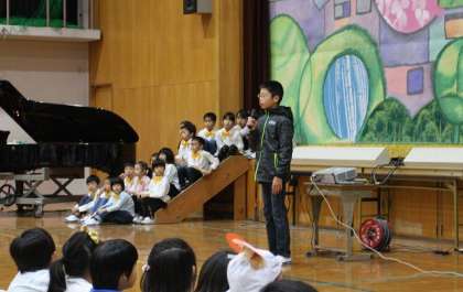 最初は,児童会より「はじめの言葉」。上手に挨拶ができますね。