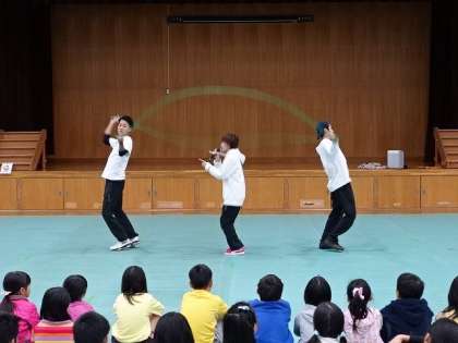さて,最初に実演を踏まえて,7種類の技を教えてくださいました。回す人をターナー,飛ぶ人をジャンパーというのです。一つ賢くなりましたね。