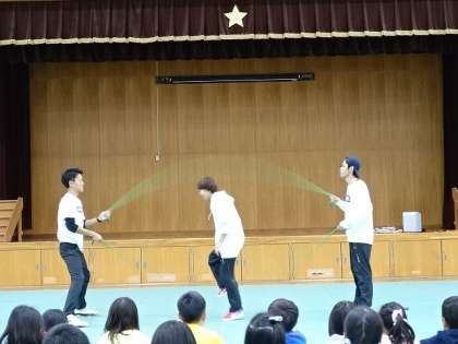 今日は,京都府ダブルダッチ協会の方から,3名のインストラクターの先生が来てくださいました。