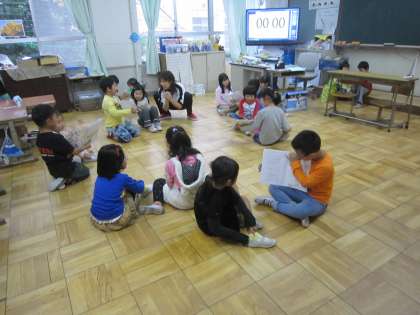 国語の単元「世界に一つだけのお話をつくろう」の学習で自分だけの本を作りました。はじめ,中,おわりと考えて,絵もかいて一生懸命作りました。その本を1年生に読み聞かせにいきました。「おもしろいと思ってくれるかな」「伝わるかな」とドキドキしていましたが,とっても楽しそうにしていました。