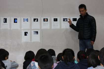 一通り,望遠鏡を覗いた後,体育館で星のお話を聞きました。