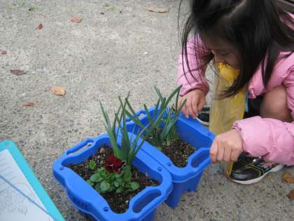 10月半ばに植えた水仙の球根が、あっという間に大きくなりました。「にょきにょき伸びてる」と、うれしさ一杯で観察しました。