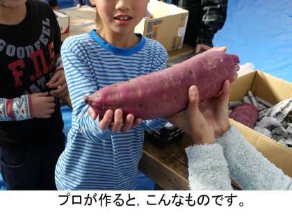 品評会の野菜ですが,「実際に手に触れてください」とのことで,子どもたちも大喜び。
