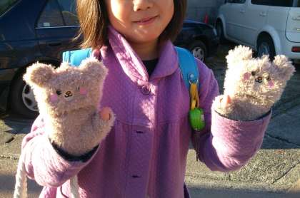 さて,こんな可愛い手袋があるんですね。ポケットに手を突っ込まなくてもいいように,手袋の準備をお願いします。