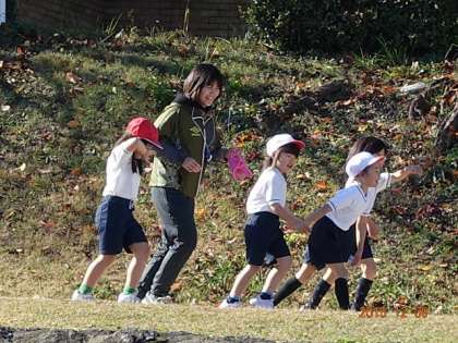 先生と一緒なら,子どもたちも頑張って走れるようです。