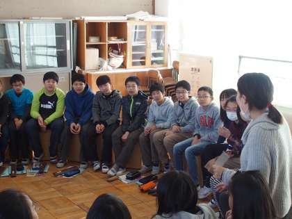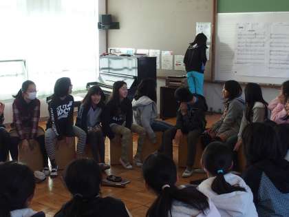 教室の中に隠したものをみんなでカホンをたたき