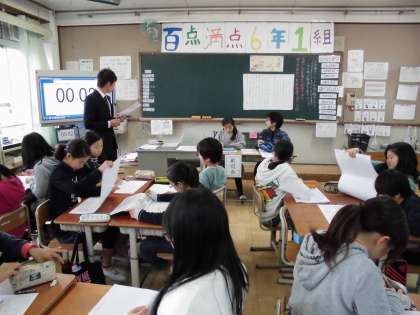 司会が前に出て学習を進めます。今日の授業の流れを確認した後は,