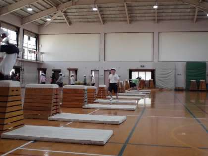 さすが6年生,準備したとび箱が美しい!きれいに一列に並んでいます。
