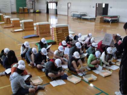 その後は学習の流れを聞いて,ねらい1「自分ができる技に挑戦しよう」が始まります。