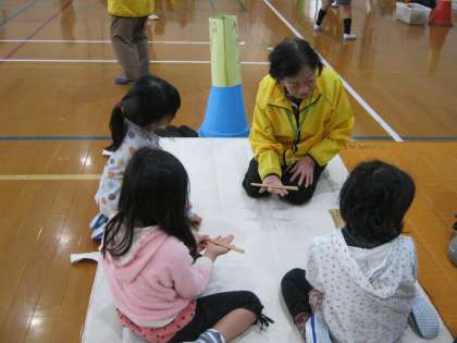 坊主めくりや羽つき,コマ回し…色々な遊びに挑戦していました。遊びの先生のすごい技を見て歓声を上げている子どもたちもいました。優しく,楽しく遊びを教えていただき,子どもたちも大満足のようでした。