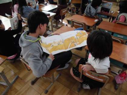 6年生は1年生に読み聞かせを行います。