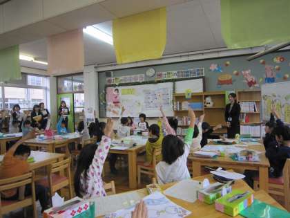 図書館で授業をしました。子どもたちは,自分で本を選んで学習できていました。