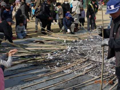 暫くすると,ほれ,おいしそうにお餅が焼けてきました。