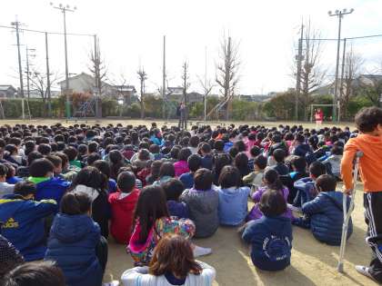 京都で地震が起こったことを想定し,避難訓練を行いました。まず自分の身を守る第一次避難から,次に運動場に全校児童が集まる第二次避難の練習をしました。学校の外で災害にあう可能性もありますので,家族で集まる場所の確認をご家庭でお願いします。