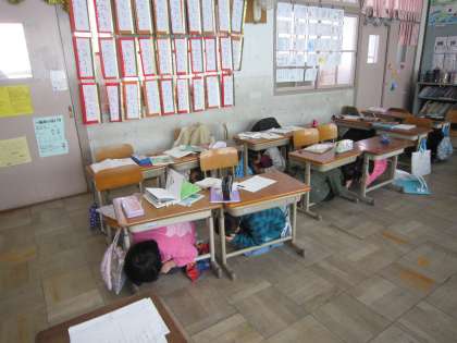 避難したあとの校長先生のお話です。真剣に話を聞いていました。