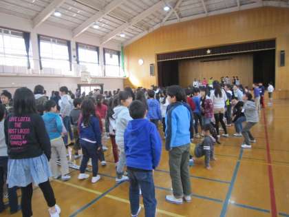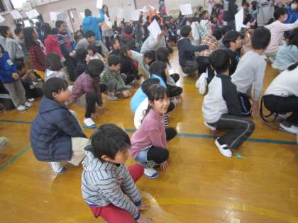 今日のたてわり遊びは集会委員よりでした。グループのみんなでポーズをそろえるという遊びでした。1年生から6年生までポーズをそろえようとがんばっていました。
