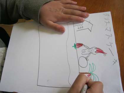 前の時間には,物の名前には,まとめた名前と一つ一つの名前があることを学習しました(例えばサバ・アジ・タイは一つ一つの名前ですが,それらをまとめた名前は魚です)。それらの学習を生かして,最後にはお店屋さんごっこをします。今日はそのお店屋さんの品物を作りました。はやくお店屋さんごっこがしたいと楽しみにしている子どもたちです。