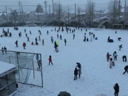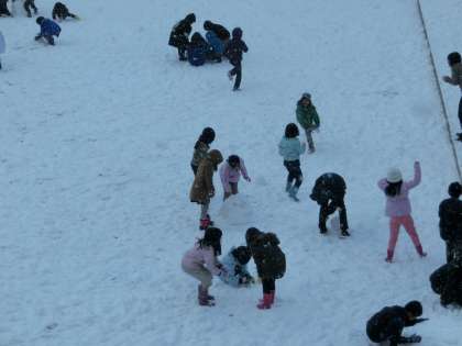 担任の先生たちは「雪遊びができるかも!」と計画していましたが,私は職員室の窓から撮影するだけでした。