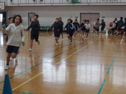 陸上部のメンバーは,体育館で朝練習をがんばっています。