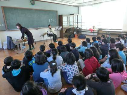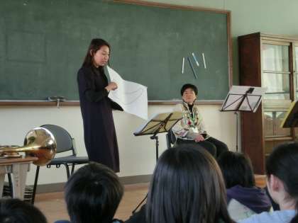 今日は4年生が地域の方をゲストティーチャーに招いて,ホルンの鑑賞会を行いました。