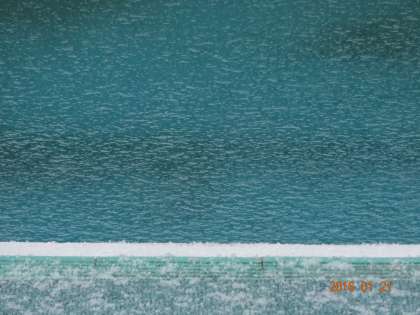 「氷や!」そうです。プールに氷が張っているのです。次に,「スケートできるな」と言いますので,そこは大人として,「無理!割れるで」と答えようと思ったのですが,子どもの夢を大切にするのが校長の仕事。「ほんまやな。でも,ちょっと氷が薄いかも」と答えました。しかしながら,私の言葉は,即座に却下され,「イナバウアーできるなー」と子どもたちは大興奮。仕方なしに,「イナバウアーなんて,よく知ってるね」ということで,話のけりがつきました。