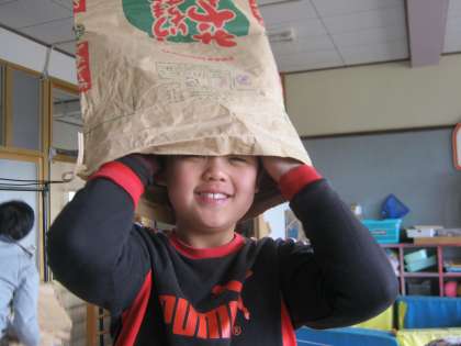 大きな袋をかぶって,お化けに変身!