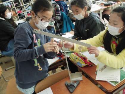 どのような条件でつりあうのか考えながら両側に重りをかけていきます。