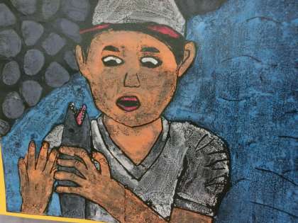 多色版画は色を乗せるのが難しく,「彫り」だけでなく「刷り」も技術が必要とされます。一緒に行った山の家の活動なので,当日の様子が思い出されました。