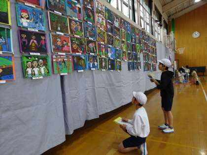他の学年の作品をじっと見入っていました。