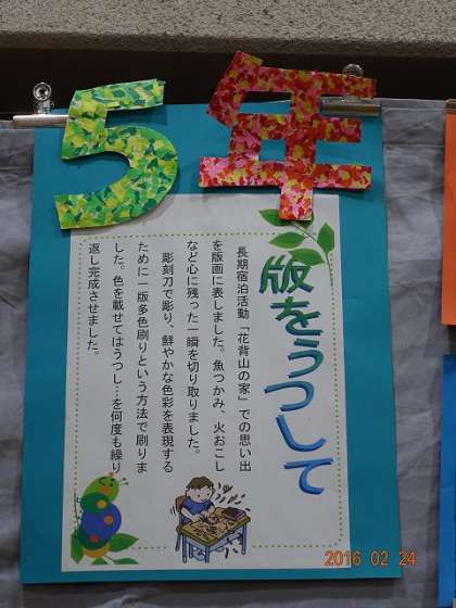 5年の作品は,多色刷りの版画です。山の家の思い出を彫り込みました。