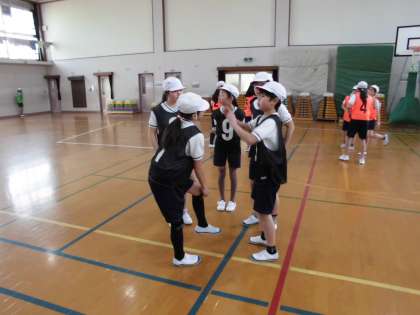 試合後に作戦タイムを設けて,話し合いをします。