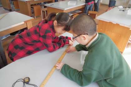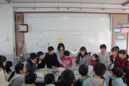 ふりこの設置の仕方を教科書で見て,さらに実演を通して学習しました。