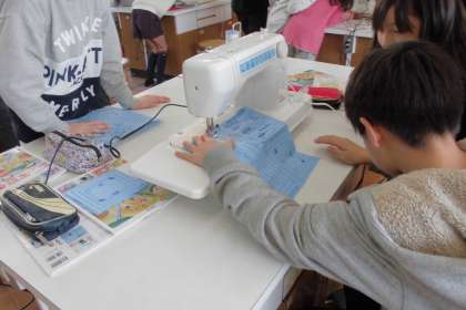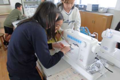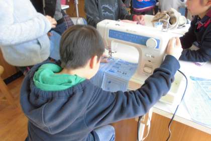 糸の準備に苦戦していましたが,縫い始めてみると,そのスピード,きれいさにビックリ!手縫いでナップサックを作ったこともあり,ミシンのスピードに感動☆