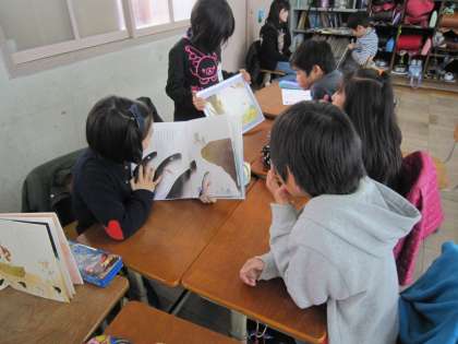 二年生は四年生に読み聞かせをしました。