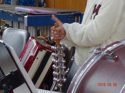 堂々として演奏ぶりです。手元をよく見ると,鈴のようなものを持っているのが見えました。リズムに合わせて,調子よく鈴の音を響かせています。