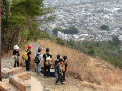 頂上からしばらく歩くと,一気に視界が開け,京都市街が一望できました。