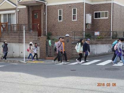 少しでも近回りをしようと,子どもたちは正門から出発したのですが,私は西門から出て,大宮通りで待っていました。が,登り口が違ったようで,みんなは南下。あわてて,近道をして追いかけました。楽をしようとすると,ろくなことがありません。この年齢になって,しみじみ反省。