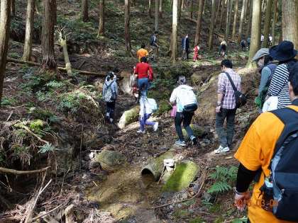 いよいよ,訳の分からない道を通らなくてはならないようです。これだから,山登りっていうのは・・・・。ネガティブになっていると,上の方から,「校長先生,ファイト!」「校長先生,頑張れ!」と子どもたちの励ましの声。ネガティブな気持ちが,オーラのように私から漂っていたのかしら。ちょっと情けない状況です。体の方は,全然大丈夫なのですが,気持ちがねー。