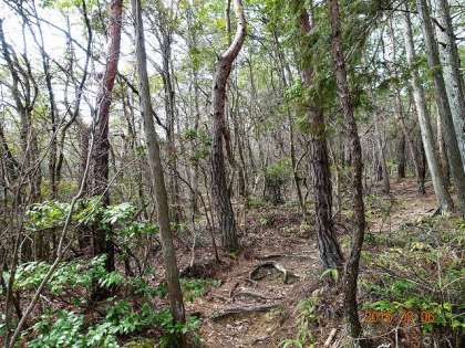 さて,先ほどの木の並び方と全く違う林の様子。人の手が入っていないということが分かります。広葉樹林が多いでしょう。