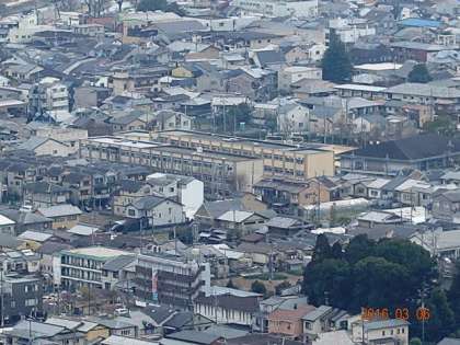 学校も見えていますね。おやじの会の皆さんのおかげで,舟山に上ることができました。無断では入れないのです。