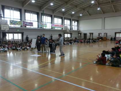 たてわり活動で読聞かせをしたり,一緒に遊んだりしました。1年間つながってきた1年生から6年生までが一体になっていましたよ。