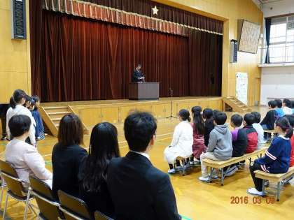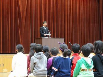 「校長先生のお話です」という司会の子どもたちの言葉を受けて,私の方で,式辞を読み上げます。