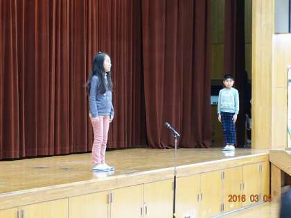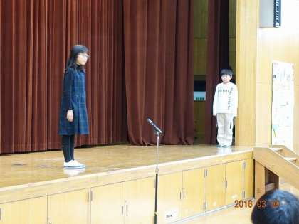 大勢の前でも,しっかりとした口調で大きな声が出ています。きちんと視線を保護者の皆さんに向けて話しているので,その思いをしっかりと受け取ることができました。