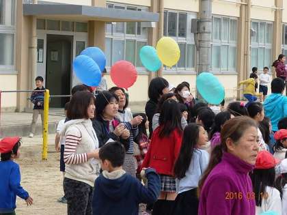 ずっと昔に卒業生だった先生たちも,風船をもらいました。