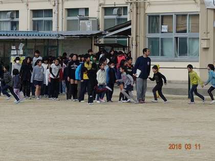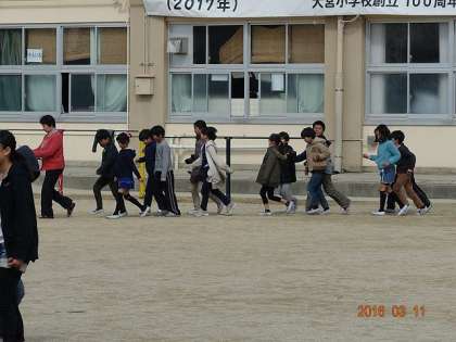 低学年優先ということで,5年生は下級生を先に避難させるべく,道をゆずっていますね。きちんと指導したことが守られています。