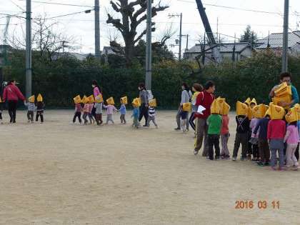 今日の訓練では,全員が運動場に避難して点呼が終わるまで,約3分30秒。