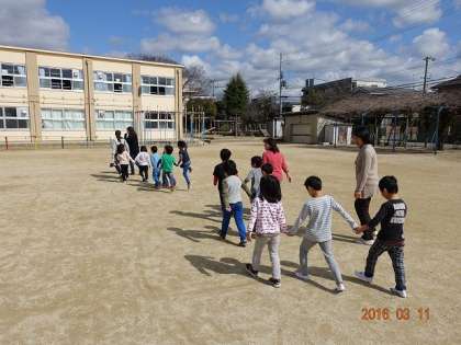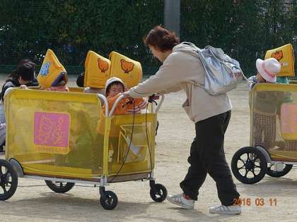 ちゃんと手をつないで,きちんと列を作っていますね。お利口さんですね。