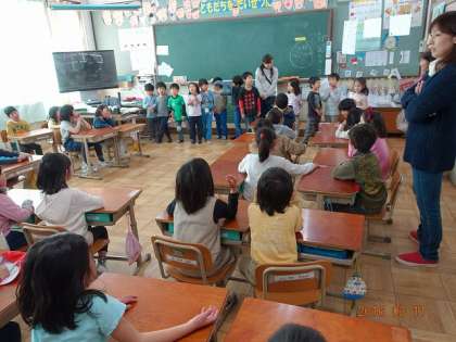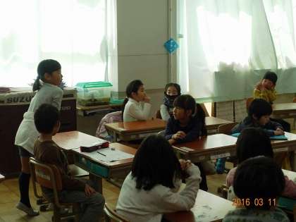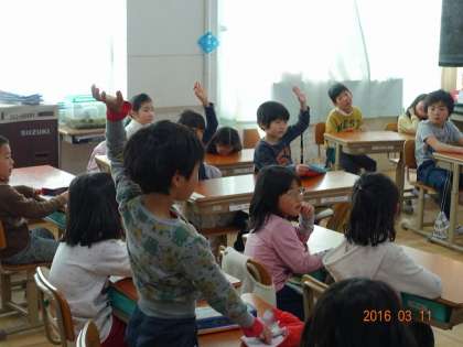 それでは,小学校の様子を教えてあげようと,1年生が手を挙げます。